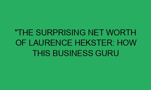 Introduction: Have you ever wondered how some people become immensely successful? Sometimes, all it takes is a great idea and the drive to make it happen. That’s what happened with Laurence Hekster, a Dutch business guru who has built an impressive net worth over the years. In this blog post, we’ll explore Hekster’s journey to success and how he managed to build a fortune. Section 1: Who is Laurence Hekster? Laurence Hekster is a self-made millionaire who was born in the Netherlands in 1969. After completing his studies in civil engineering, Hekster started his first business, a construction firm. ...Read more